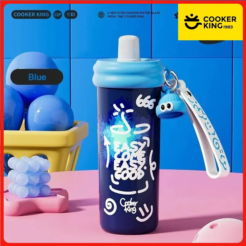 COOKER KING Sports Thermos Cup Stainless Steel Water Cup Colorful Patterns Insulated Water Bottle with Straw Hot & Cold Flask