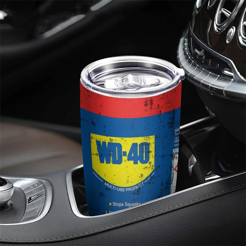 20Oz WD40 Stainless Steel Vacuum Tumbler Double Wall Insulated STP Engine Oil Filter Print with Straw and Lid Cold Hot drink cup