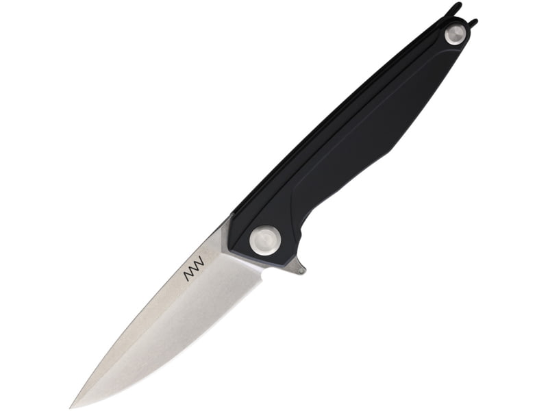 Acta Non Verba Knives Z300 Framelock Folding Knife 3.5" stonewash finish Sleipner tool steel blade Black finger grooved titanium handle ANVZ300-017