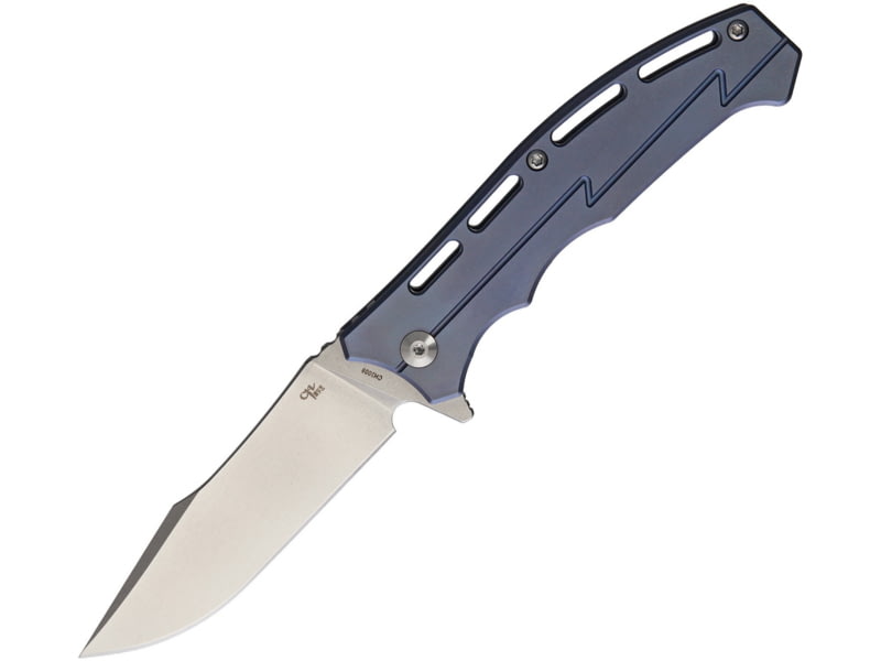 CH Knives Framelock Blue Folding Knife 3.5in Stonewash D2 Tool Steel Blade Blue Titanium Handle Pocket Clip CH3009