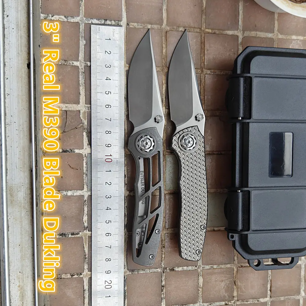 JUFULE New Dukling 3" Real M390 Blade Titanium Handle Ceramic Bearings Pocket EDC Tool Camping Kitchen Outdoor Folding Knife