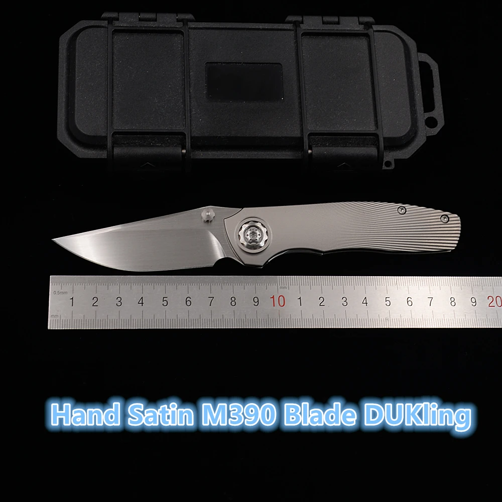LEMIFSHE New Dukling Real M390 Blade Titanium Handle Ceramic Bearings Pocket EDC Tool Camping Kitchen Outdoor Folding Knife