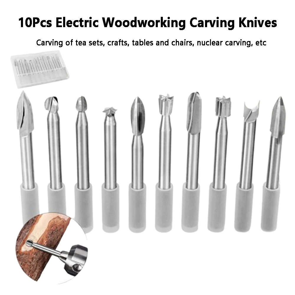 10Pieces Electric Wood Carving Root Carving Tools Woodworking Carving Polishing Tool Heads Milling Cutters Drill Bits
