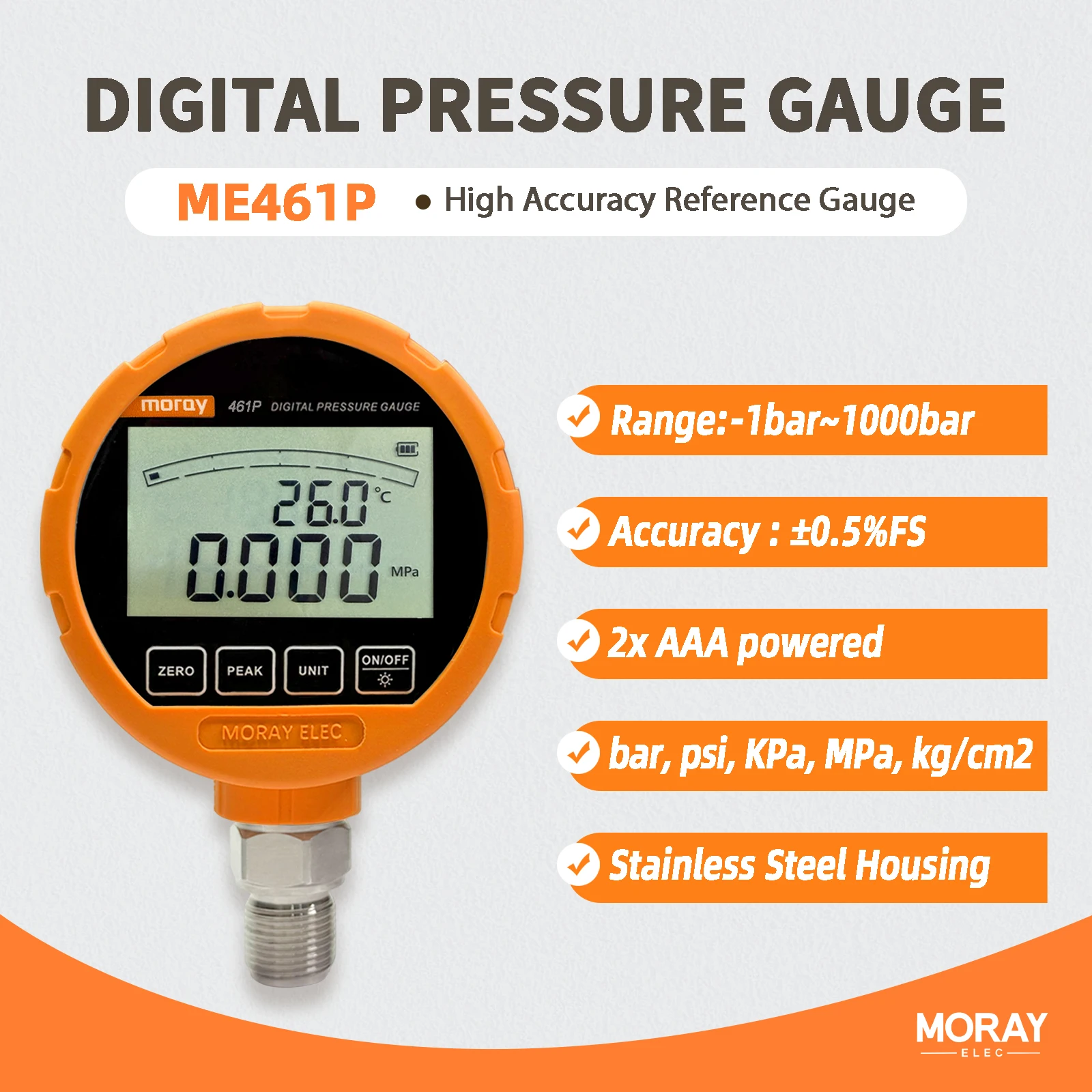 Moray ME461P Pressure Gauge Rubber Protector Dustproof Accuracy 0.5%FS Diaphragm 316L LCD Stainless Steel Gas Pressure Gauges