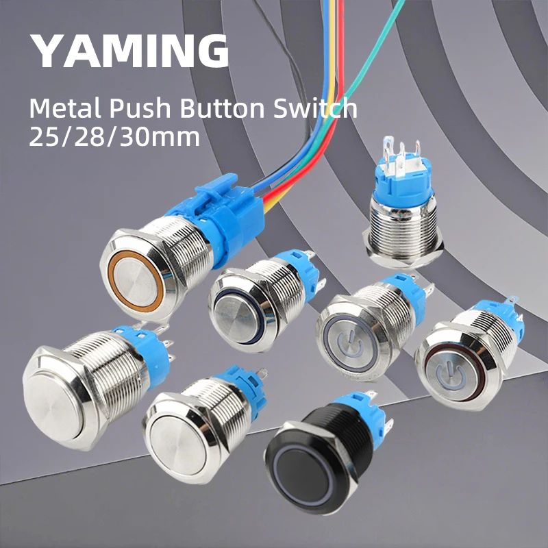 25/28/30/40mm Stainless Steel Metal Push Button Switch With Lamp Lock/Latching Momentary/Reset Power Supply Waterproof 1NO1NC