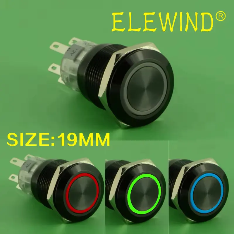 ELEWIND 19mm RGB LED Push Button Switch Black Aluminum Stainless Steel 3 Color Ring 12V PM192F-11E/J/RGB/12V/A