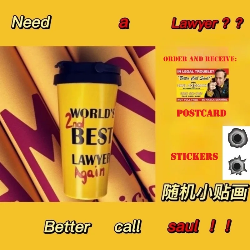 1pc "better call saul" yellow coffee cup, stainless steel insulated cup, world's second best lawyer, deadly coffee cup