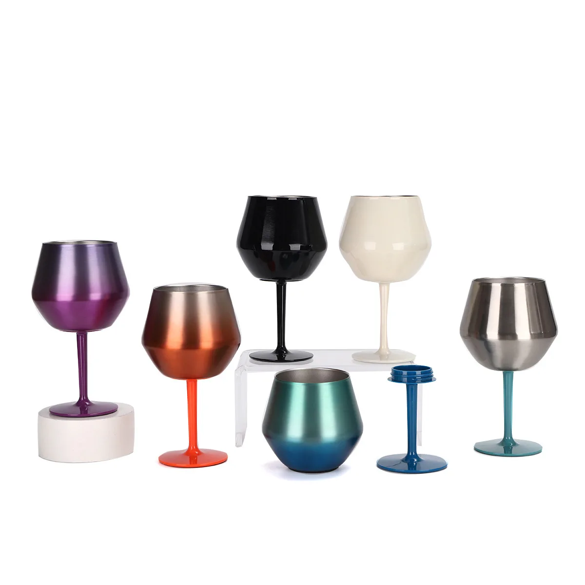 Custom Pattern Picture Name New 304 stainless steel goblet with detachable plastic part 14oz heat cold wine glass coffee cup