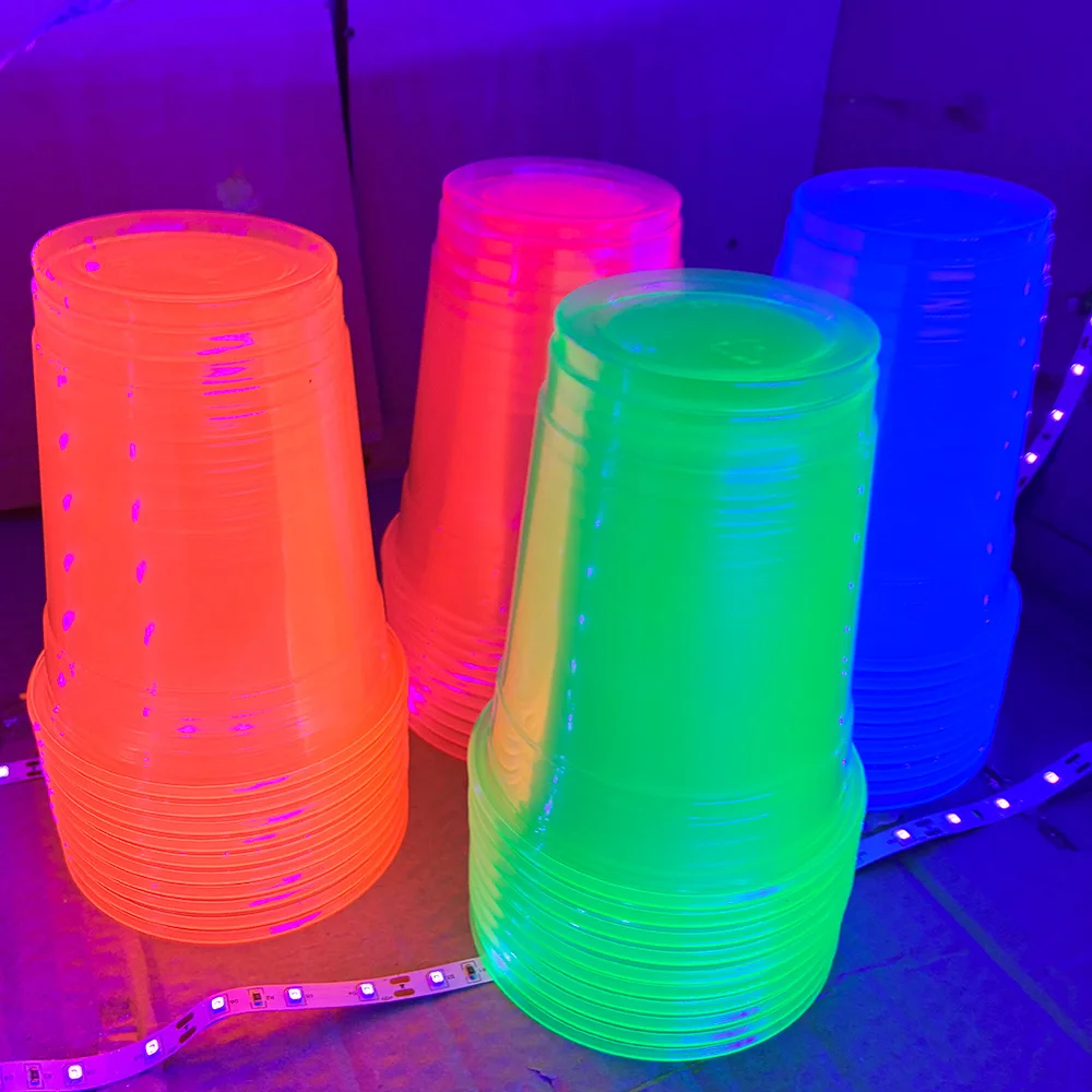 40 Pcs 12 oz Plastic Cups Neon Glowing Plastic Party Cups Assorted Neon Colors Parties Carnivals and Any Events Cocktail Glasses