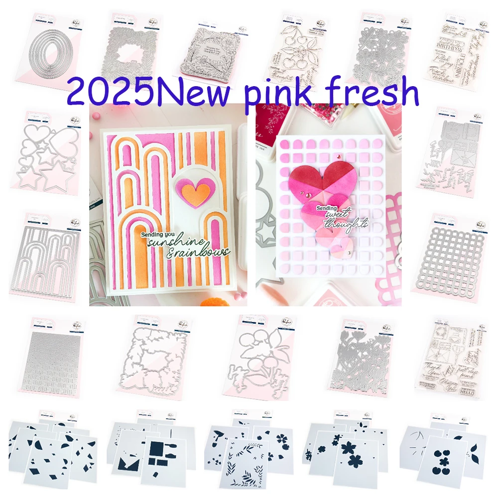 Metal Cutting Dies 2024 New Pink Squares Diagonal and Hexagons Die Fresh Decoration for DIY Scrapbooking Paper Craft Mould Hot