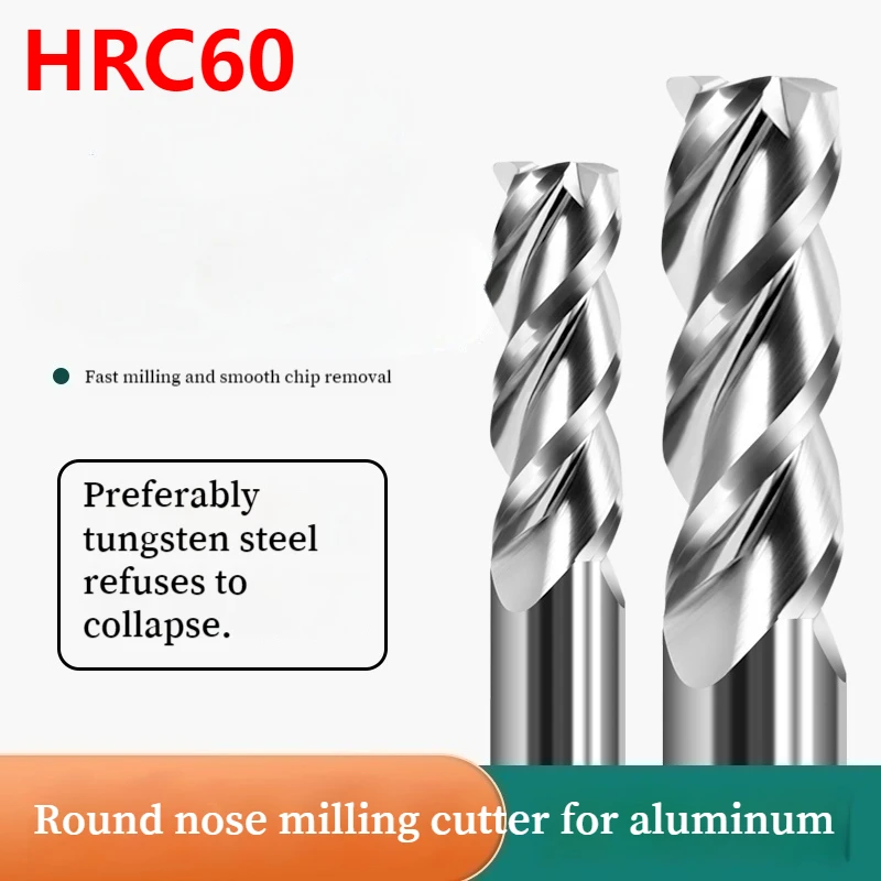 60 Degree Bullnose End Mill R1 R2 R3 3 Flutes Carbide CNC Router Tool for Aluminum Tungsten Steel