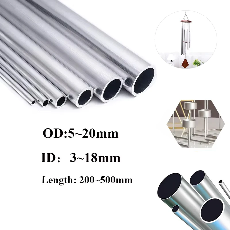 1pcs Aluminum tube thick 0.5~3mm outer diameter 5-20mm inner diameter 3~18mm straight 200-500mm long 6063 aluminum alloy tube