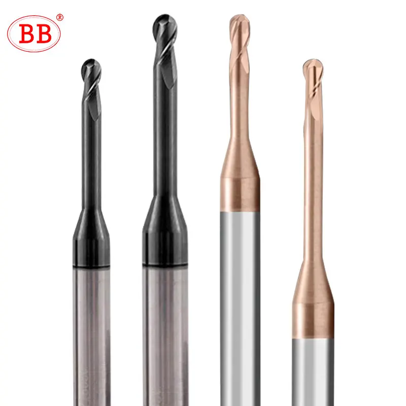 BB Micro Ball End Mill Long Neck Carbide CNC Small Mini Rib Deep Machining Cutter R0.1-R1.5 Tool for Steel Metal