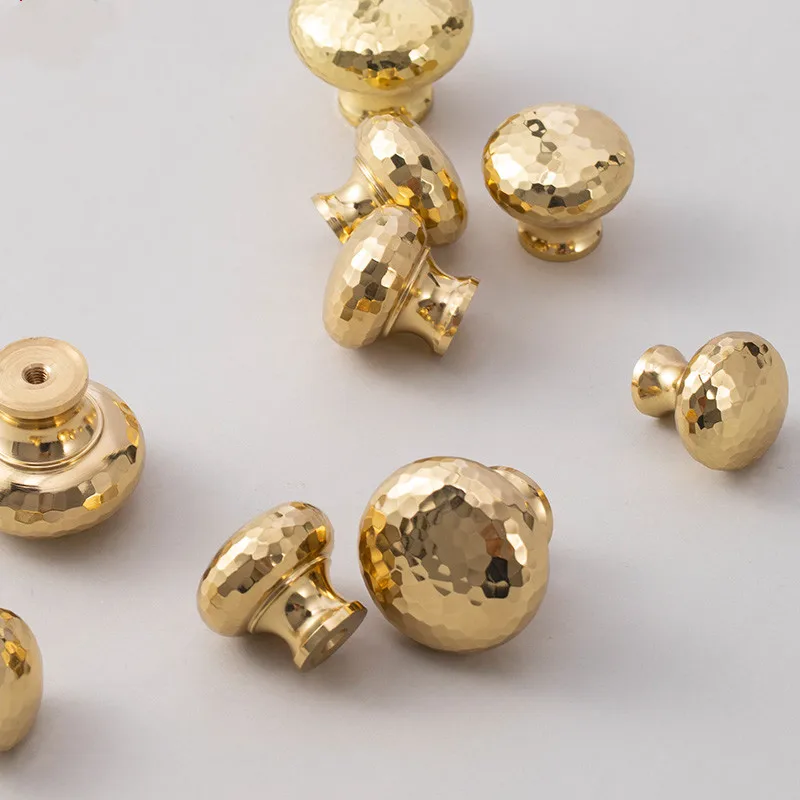 Light Luxury Hammer Pattern Brass Handle Modern Simple Cabinet Drawer Wardrobe Single Hole Solid Brass Small Handle Drawer Knobs