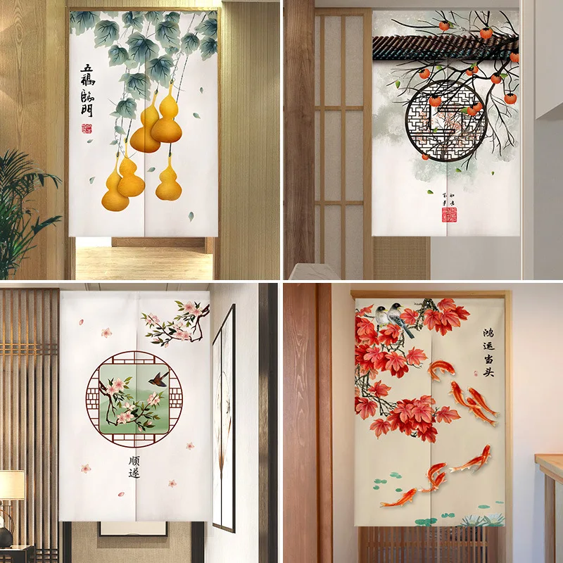 Chinese Style Door Curtain Plant Decorative Curtain Living Room Partition Curtains Girl Bedroom Wardrobe Linen Fabric Noren