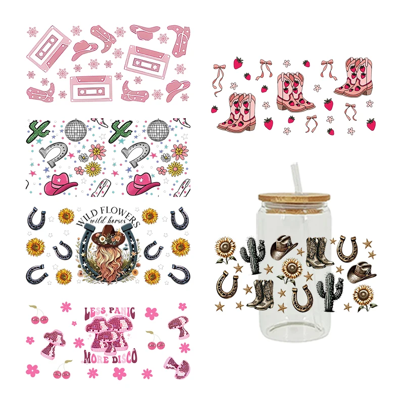 3D UV DTF Transfers Stickers 16oz Cup Wraps Cartoon Cowgirl Printed For DIY Glass Ceramic Metal Leather Etc. D15522