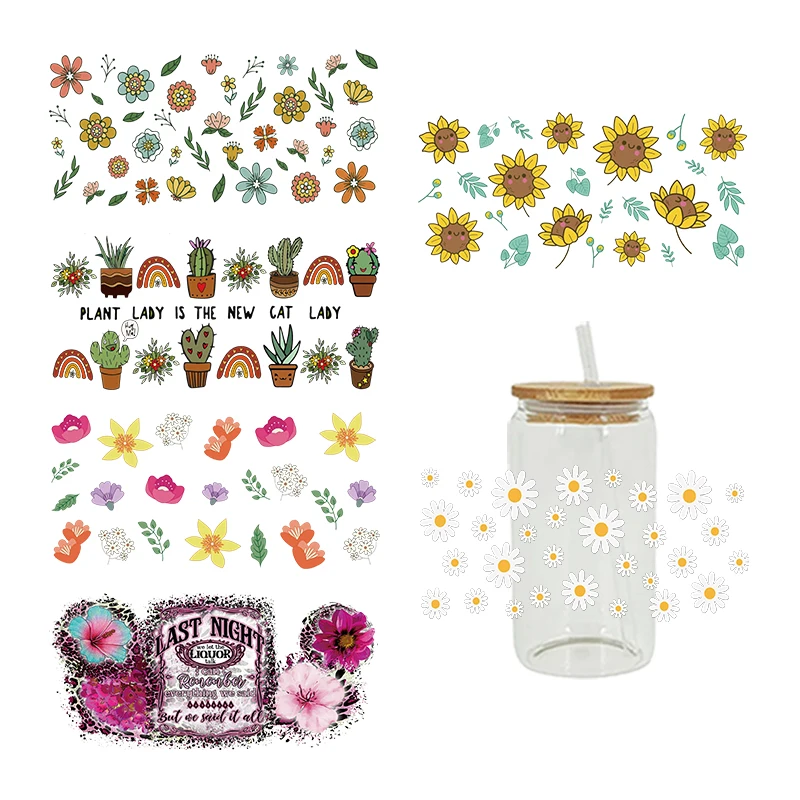 3D UV DTF Transfers Stickers 16oz Cup Wraps Plants Flowers Cactus Printed For DIY Glass Ceramic Metal Leather Etc. D13152