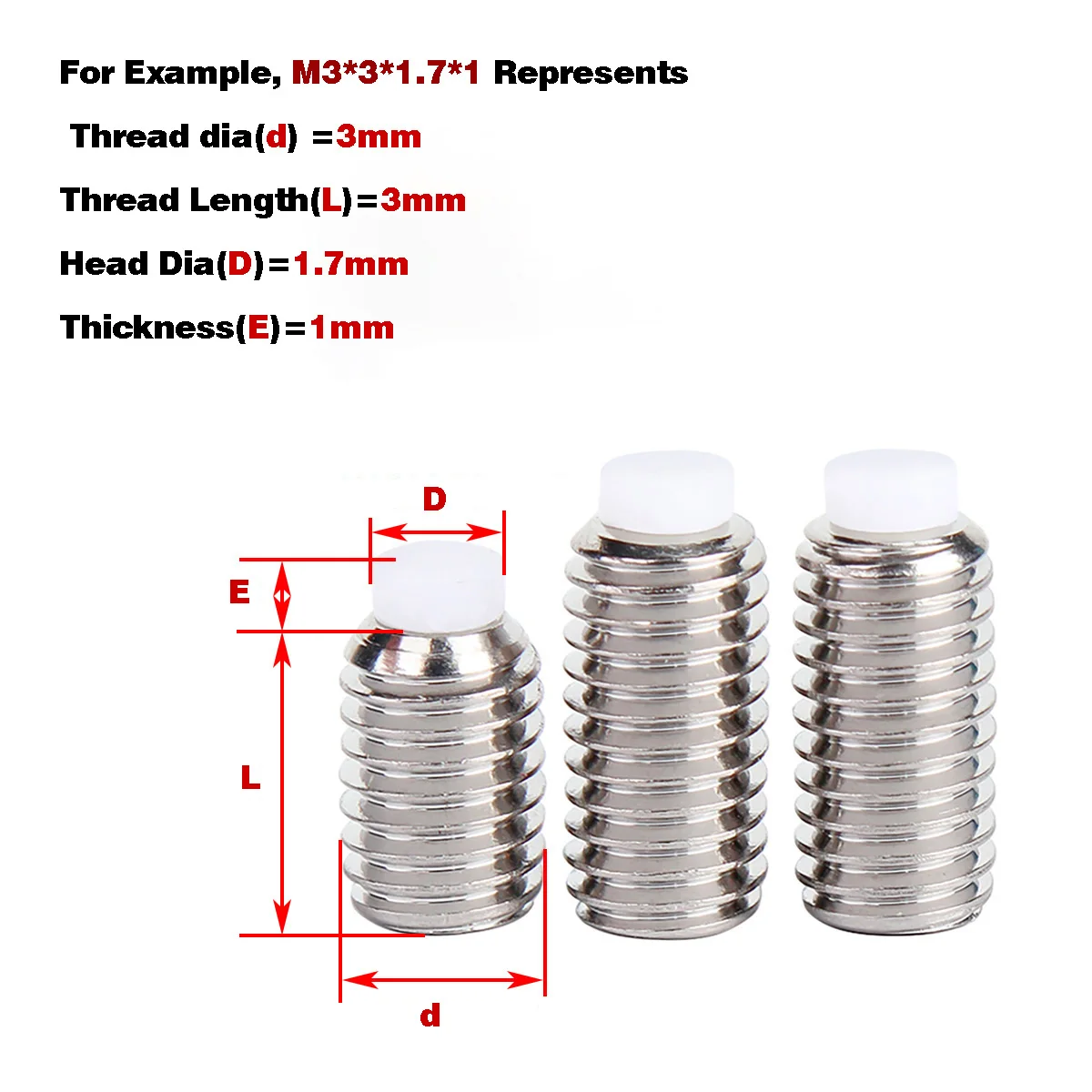304 Stainless Steel Plastic Plunger Stop Set Screw / Nylon Head Buffer Bolts M3-M12