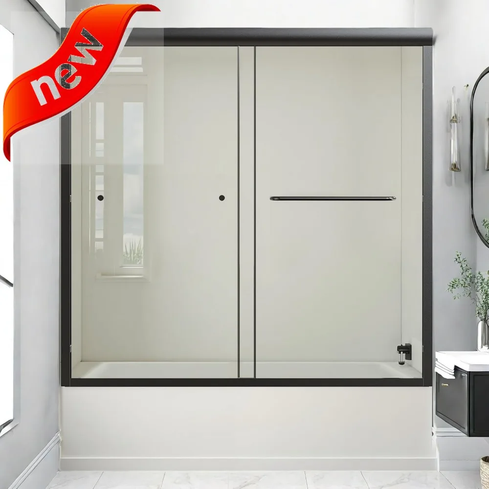 56"- 60" W x 72'' H Double Sliding Door, Semi-Frameless Shower Door, 1/4" (6mm) Tempered Glass for Walk-in Shower