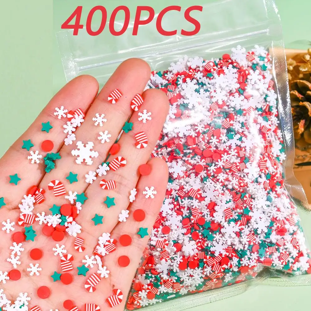 Christmas Cartoon Slime Polymer Clay Nail Slices Charms Winter White Snowflakes/Star Xmas New Year Nails Decor Soft Clay #400PCS