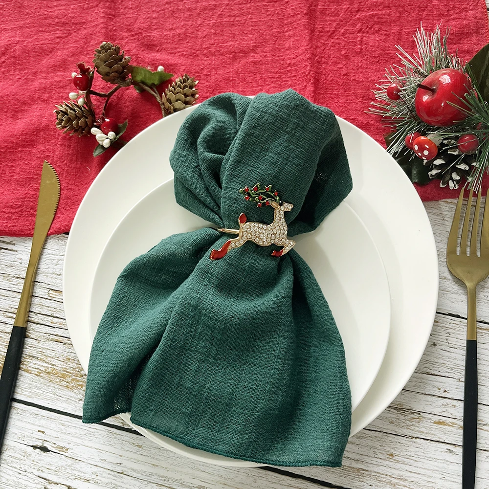 4PCS 30x45cm100% Cotton Christmas Green Napkin Blue Reusable Wedding Party Table Decor Retro napkins
