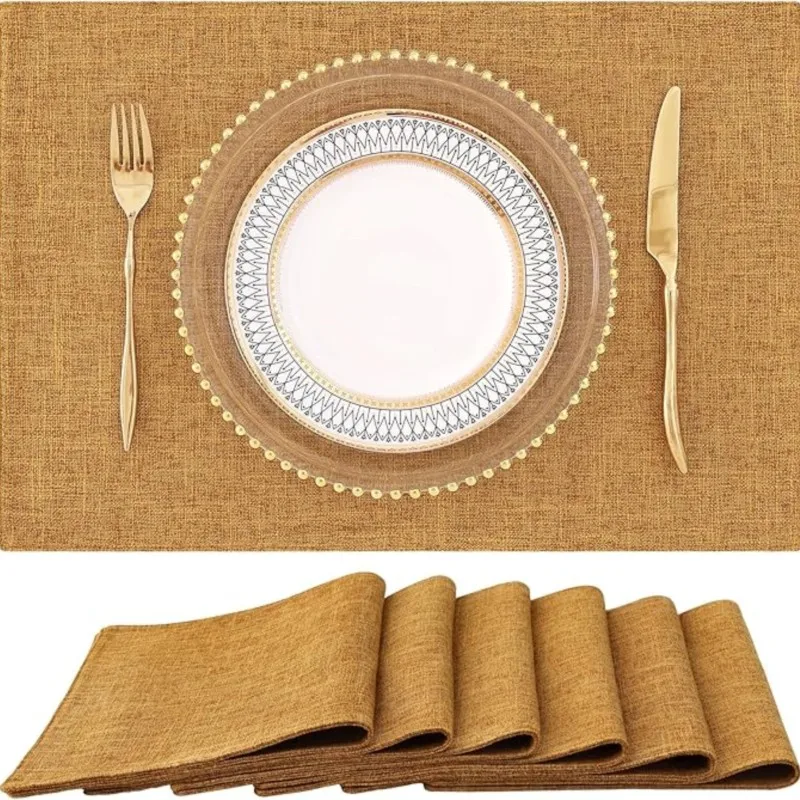 Kitinjoy Neutral Durable Cloth Cotton Linen Blend Dining Table Mats Placemats Super Easy to Clean Washable Placemats For Indoor