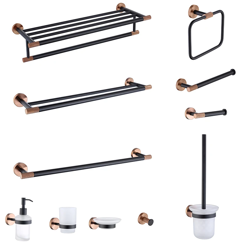 SANLUOIS Black Rose Gold Wall Mount Stainless Steel Robe Hook Toilet Brush Paper Holder Towel Bar Rack Cup Holder Bathroom Set