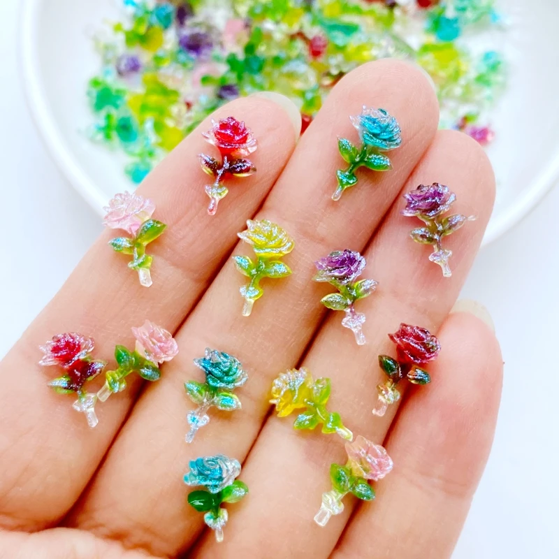 100Pcs New Cute Mini 7*11mm Shiny Roses Flat Back Resin Cabochons Scrapbooking DIY Jewelry Craft Decoration Accessorie