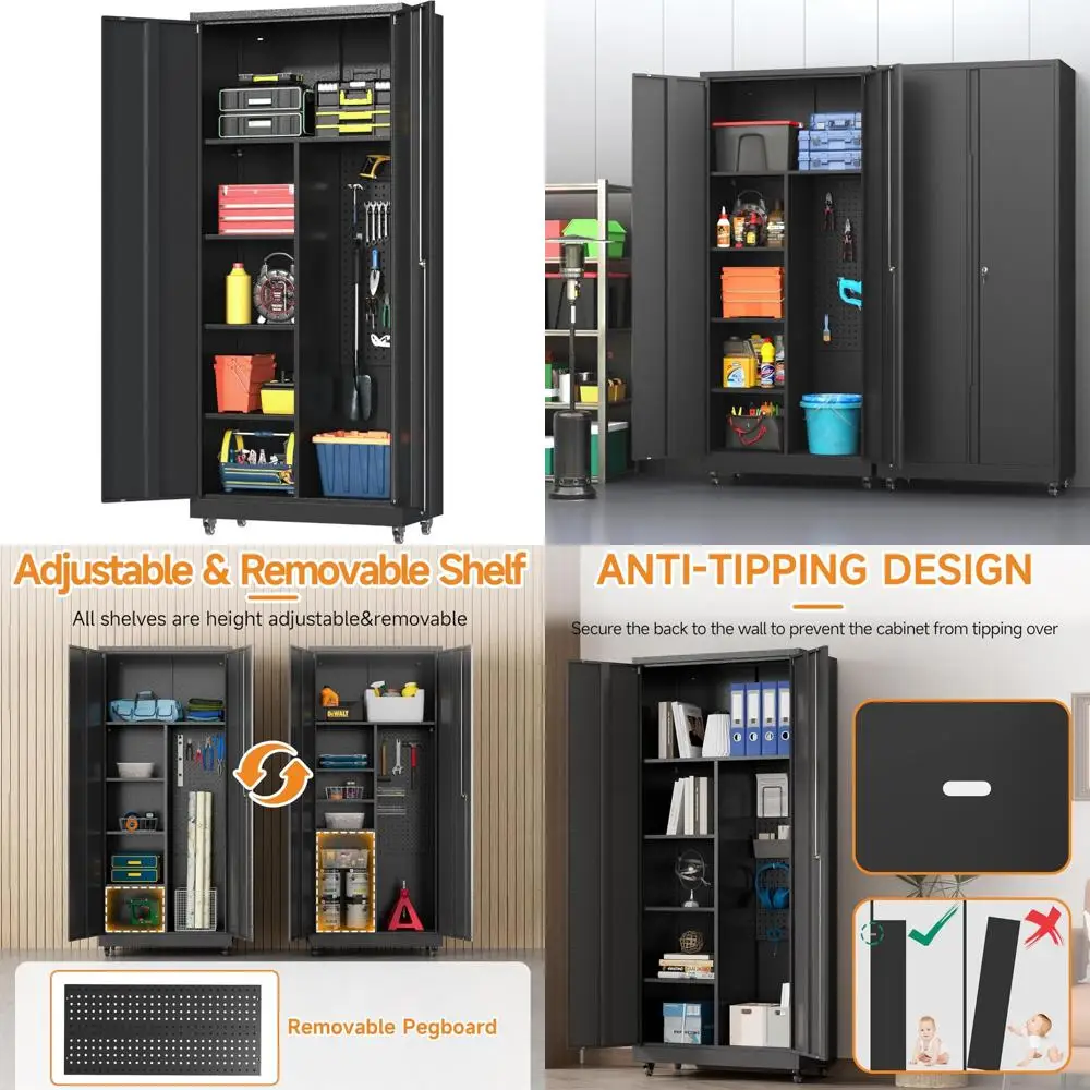 Double-Door Steel Rolling Tool Cabinet with Adjustable Shelves and Lockable Storage for Secure Organization