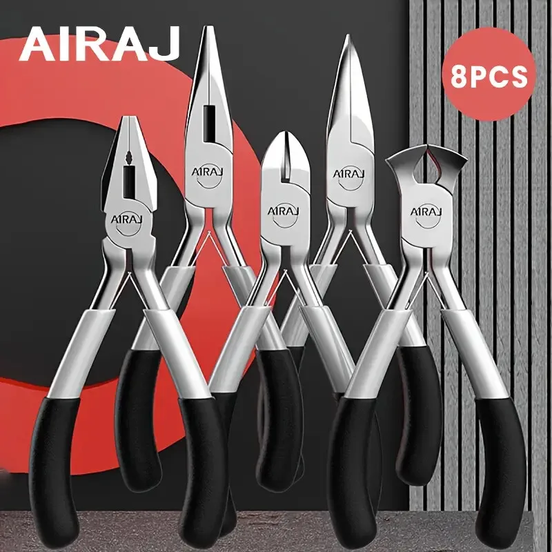 AIRAJ 8 pcs Mini Pliers Set Precision Tools Needle/Round/Flat Nose Diagonal Cutters High Carbon Steel Jewelry/Electronics DIY