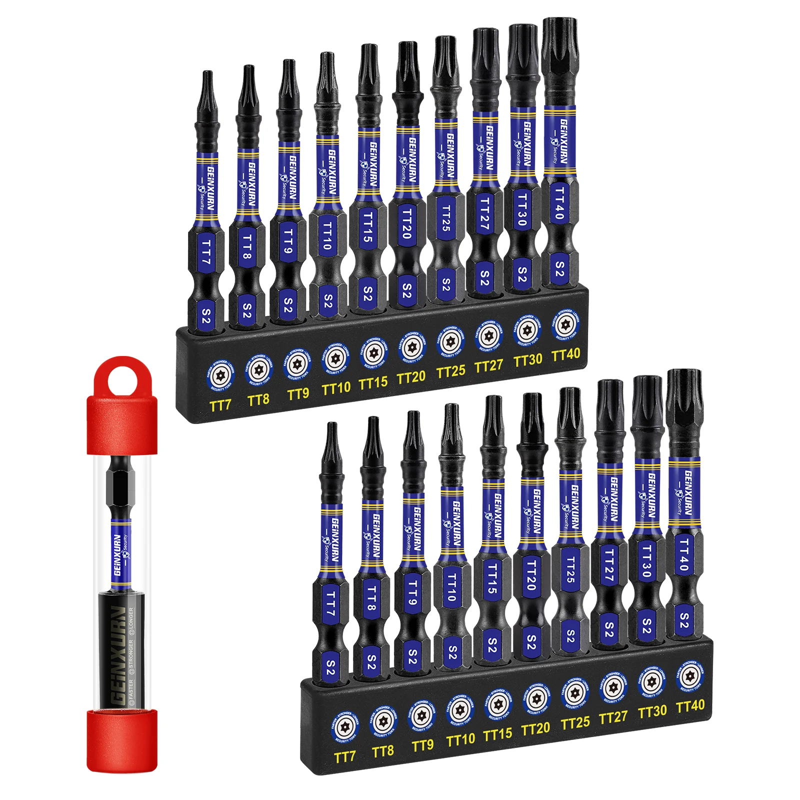 Geinxurn 2 inch Impact Magnetic Security Torx Screwdriver Bit Set , S2 Alloy Steel Bit with Storage Organizer