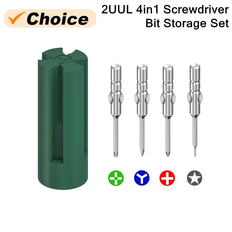2UUL SD24 4 IN 1 Screwdriver Bits with Magnetic Storage Set High-Hardness Alloy S2 Head CC /Pentalobe/Tri-Point/Phillips Bits