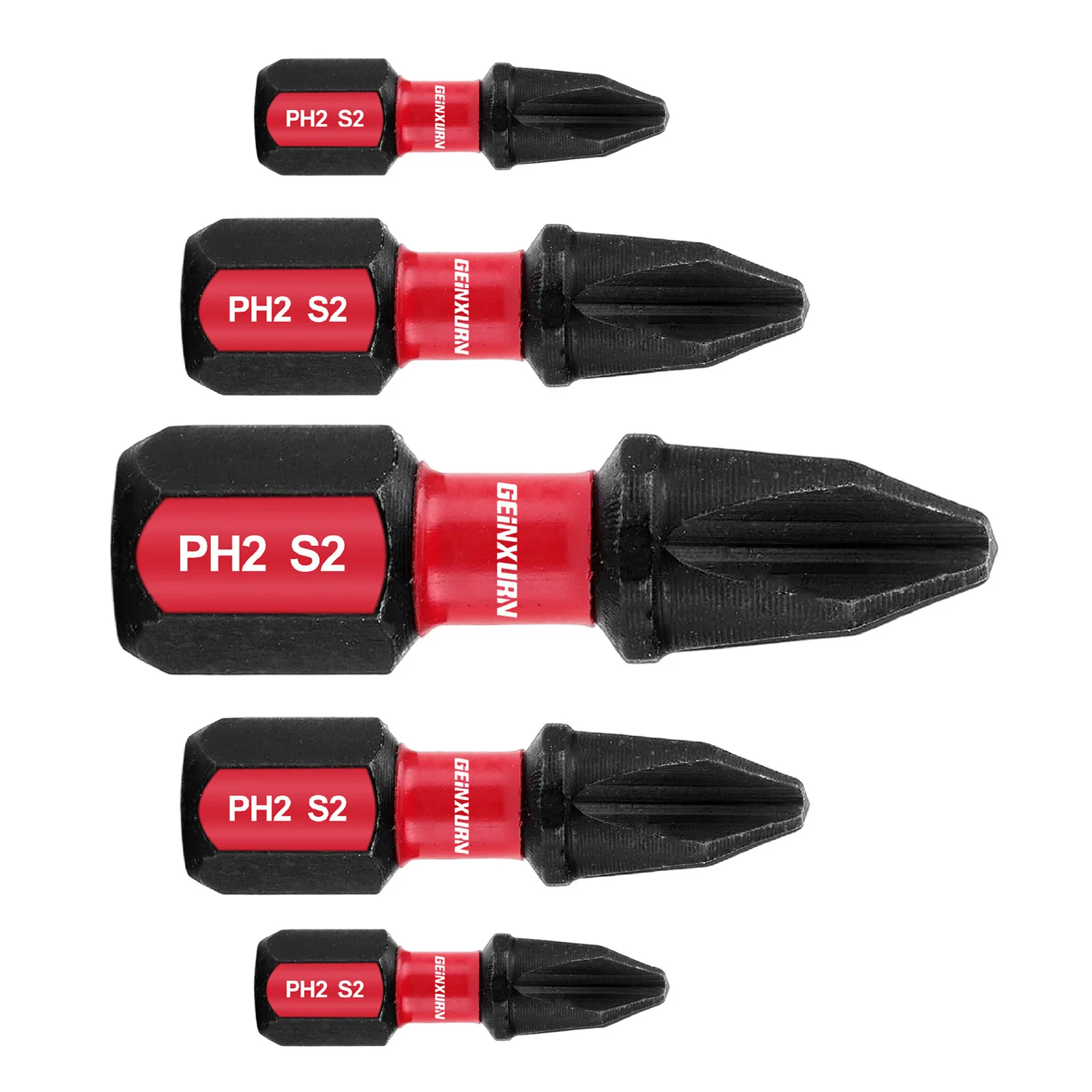 Geinxurn 1 Inches #2 Phillips Impact Screwdriver Bit , S2 Alloy Steel PH2 Power Screwdriver Bit Set