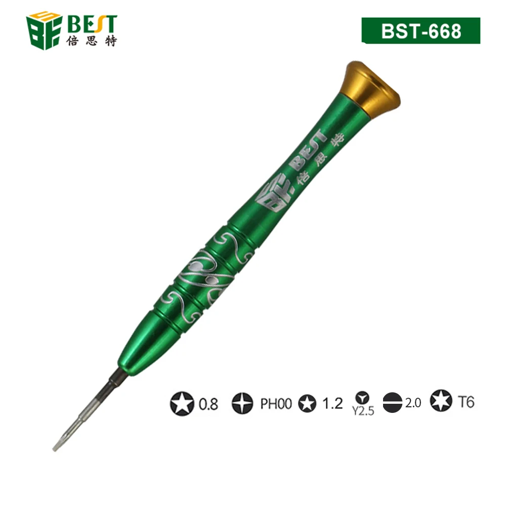 Precision Screwdrivers Aluminium Alloy Handle S2 Screwdriver Bits PH00/2.0 Slotted/T6/2.5Y/0.8Pentalobe/1.2Pentalobe Screwdriver