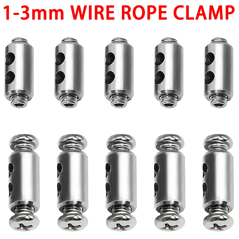 10pcs 1-3mm Steel Wire Rope Clamps Double Hole Suspension Cable Clip Screw Adjustment Telescopic Locks Fastening Accessories