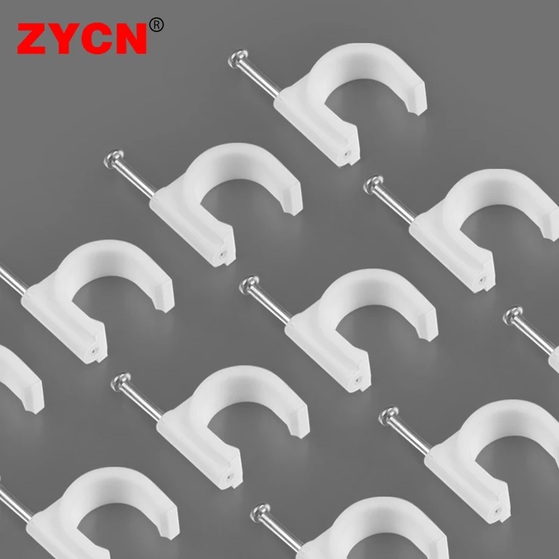 100Pcs Plastic Cable Clips Round Mount Fixing Steel Nail for RG6 CAT6 Wire Clamp 4/6/10/12MM Wall Telephone Line Fix