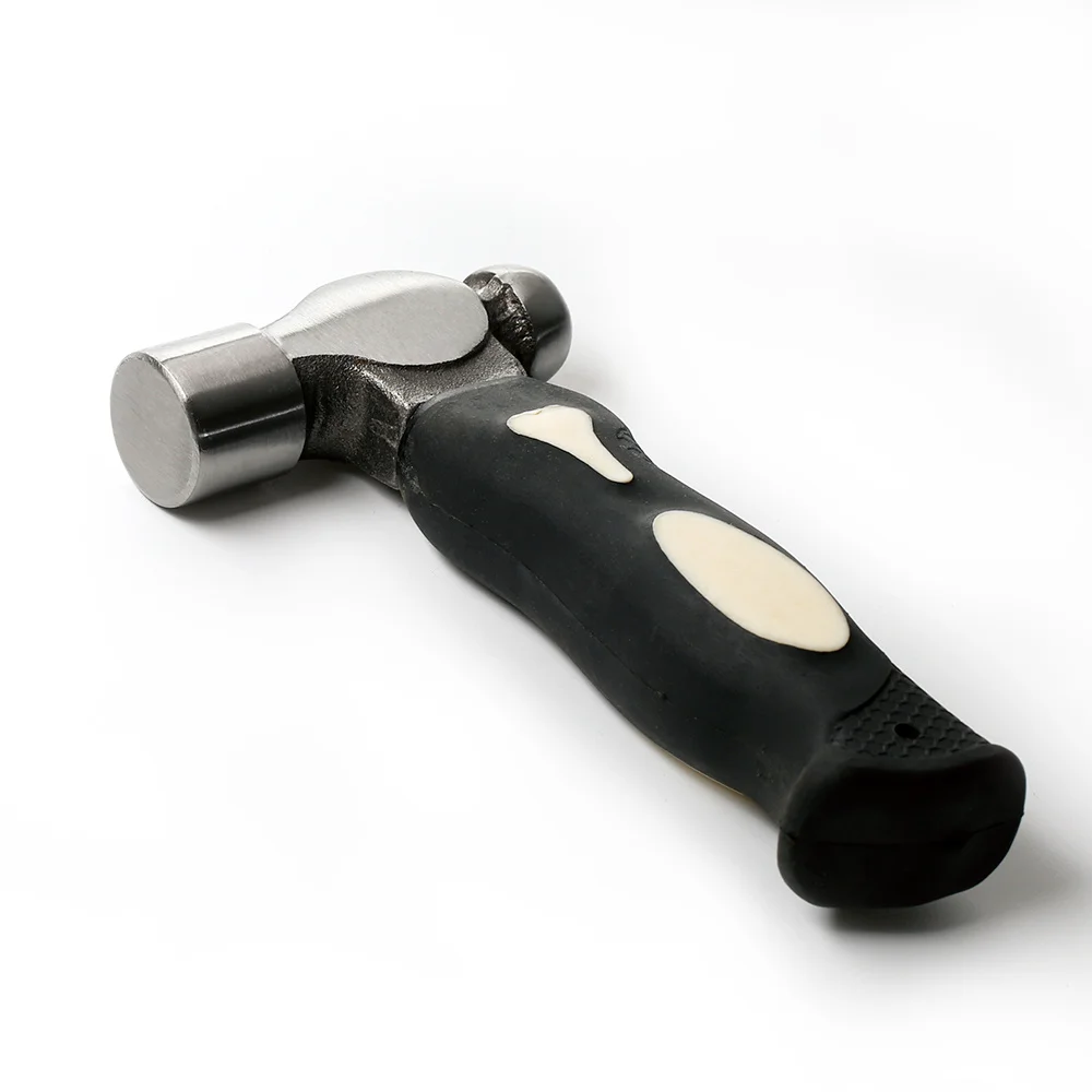 A high - visibility ball - peen hammer with a shock - absorbing handle, a carbon - steel head, and an orange - textured grip.