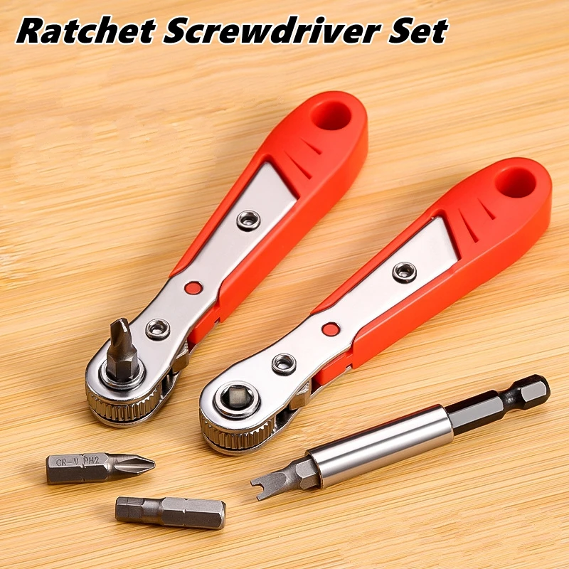 Magnetic Driving Ratchet Wrench Screwdriver with Bits Socket 36 Tooth Quick Ratche Wrench L-Shaped Tools for Tight Space Repairs