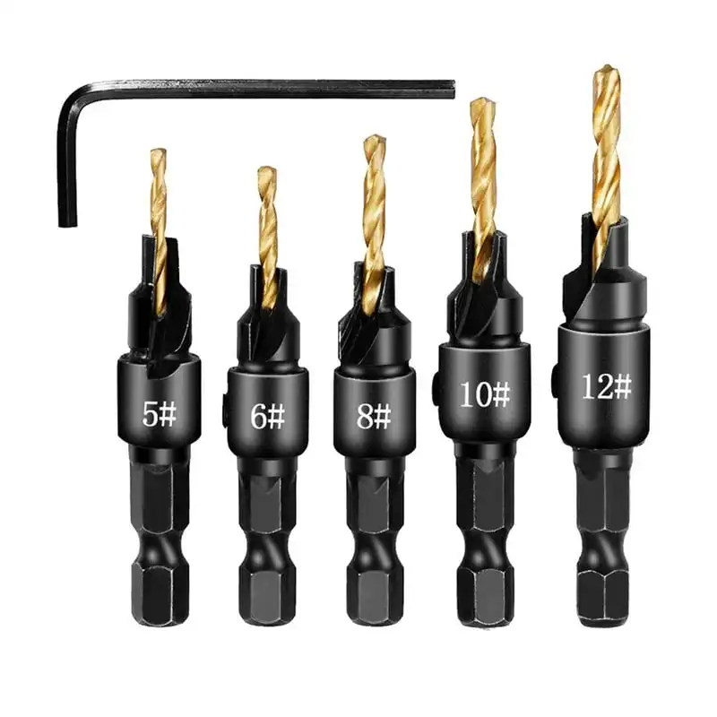 5Pcs Countersink Drill Bit Set Adjustable Chamfered Tool Kit for Woodworking Pilot Holes Hex Shank Accessories