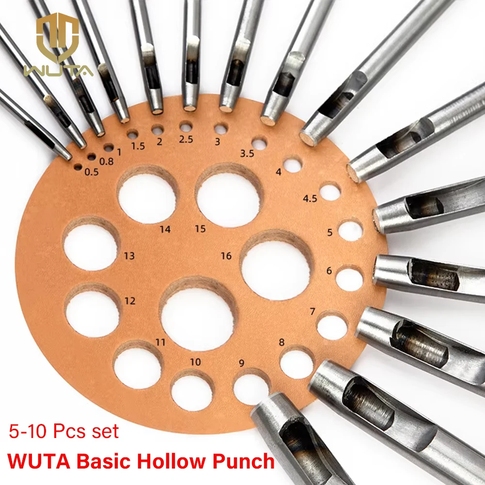 Leather Hollow Punch Set Round Hole Punch Tool 5-15 Pcs Kit Steel DIY Craft Working for Watch Band, Fabric, Plastics, Gasket Belt
