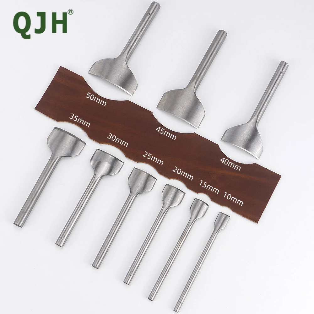 18 PCS Leather Belt Punch Chisel Cutter Mold, Round/V Shaped/Square Corner Cutter Strap Edge Punch 3 Styles 15/20/25/30/35/38mm