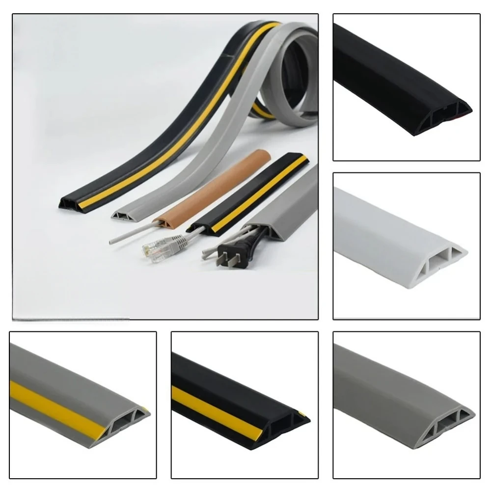 1pc 1m/39.37in PVC Floor Cable Protector Self Adhesive Wire Cover Flexible Cable Duct Cord Hider For Home Office Desk TV Comput