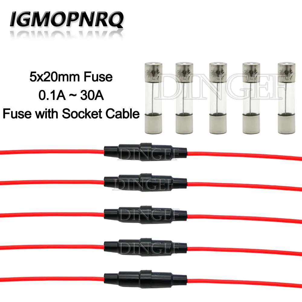 10PCS 5PCS 5*20mm Glass Fuse Holder Screw Type 5X20mm with 5PCS 22AWG Wire Cable 5X20MM Glass Fuse Tube (5PCS+5PCS=10PCS) 5set