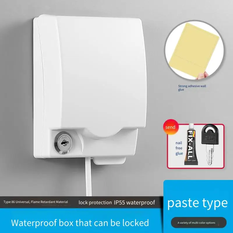 Type 86 Adhesive Waterproof Box with Lock and Lock Switch Socket Box Bathroom Waterproof Cover with Lock Splash-proof Box