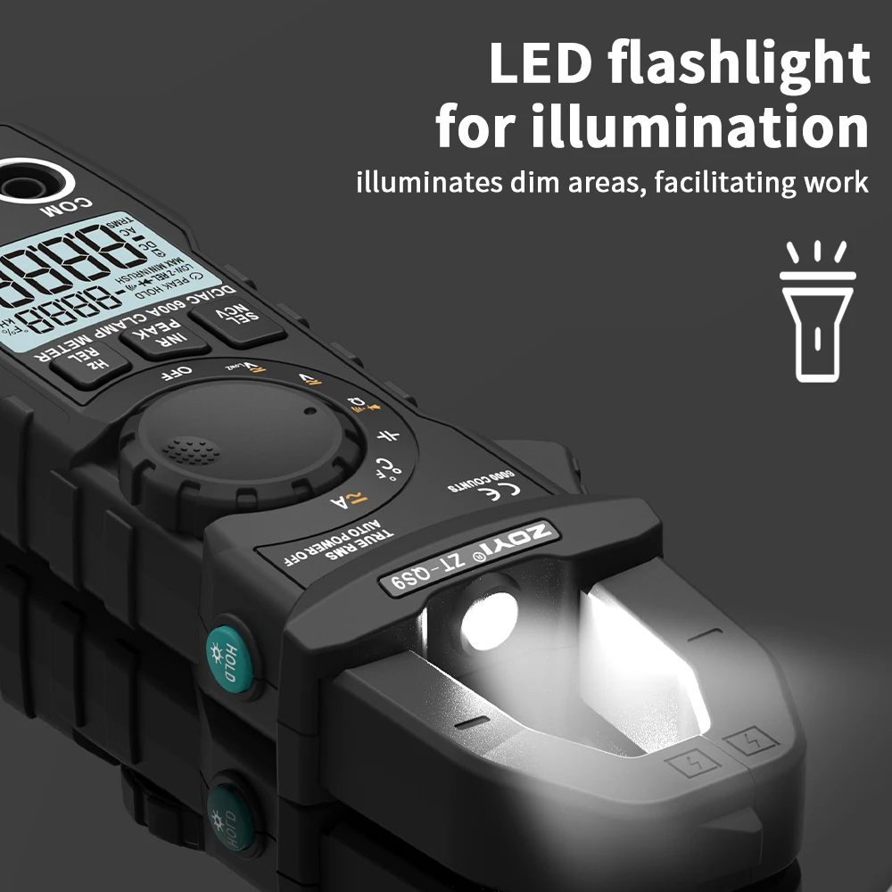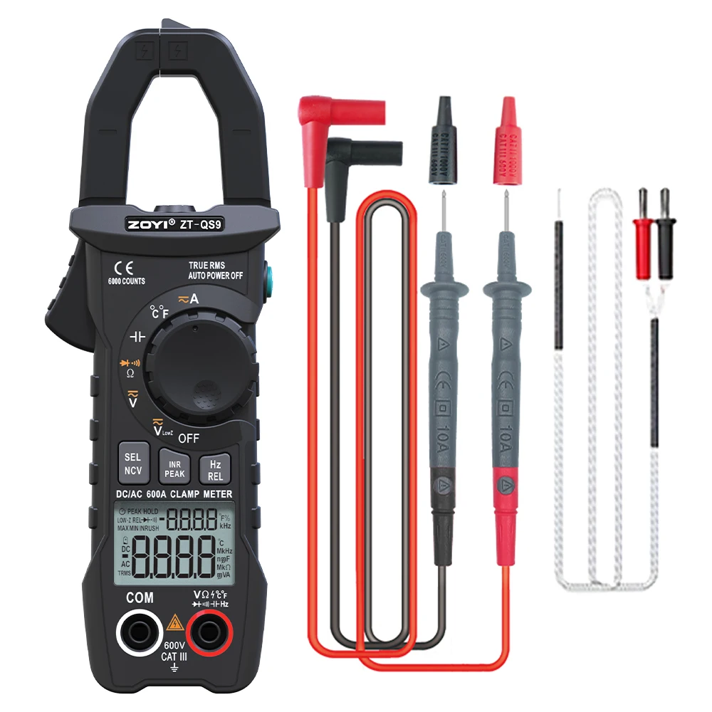 ZOYI ZT-QS9 Clamp Meter DC/AC 600A Current Voltage 6000 Counts Multimeter Ammeter Tester Car Amp Hz Capacitance NCV Ohm Test