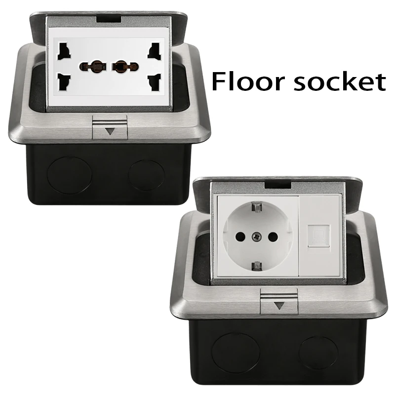 2025 Floor Socket 6 Hole Embedded Damping Aluminum Alloy Ground Electrical Outlet 13A AC 110-250v Ground Socket Floor Socket Box