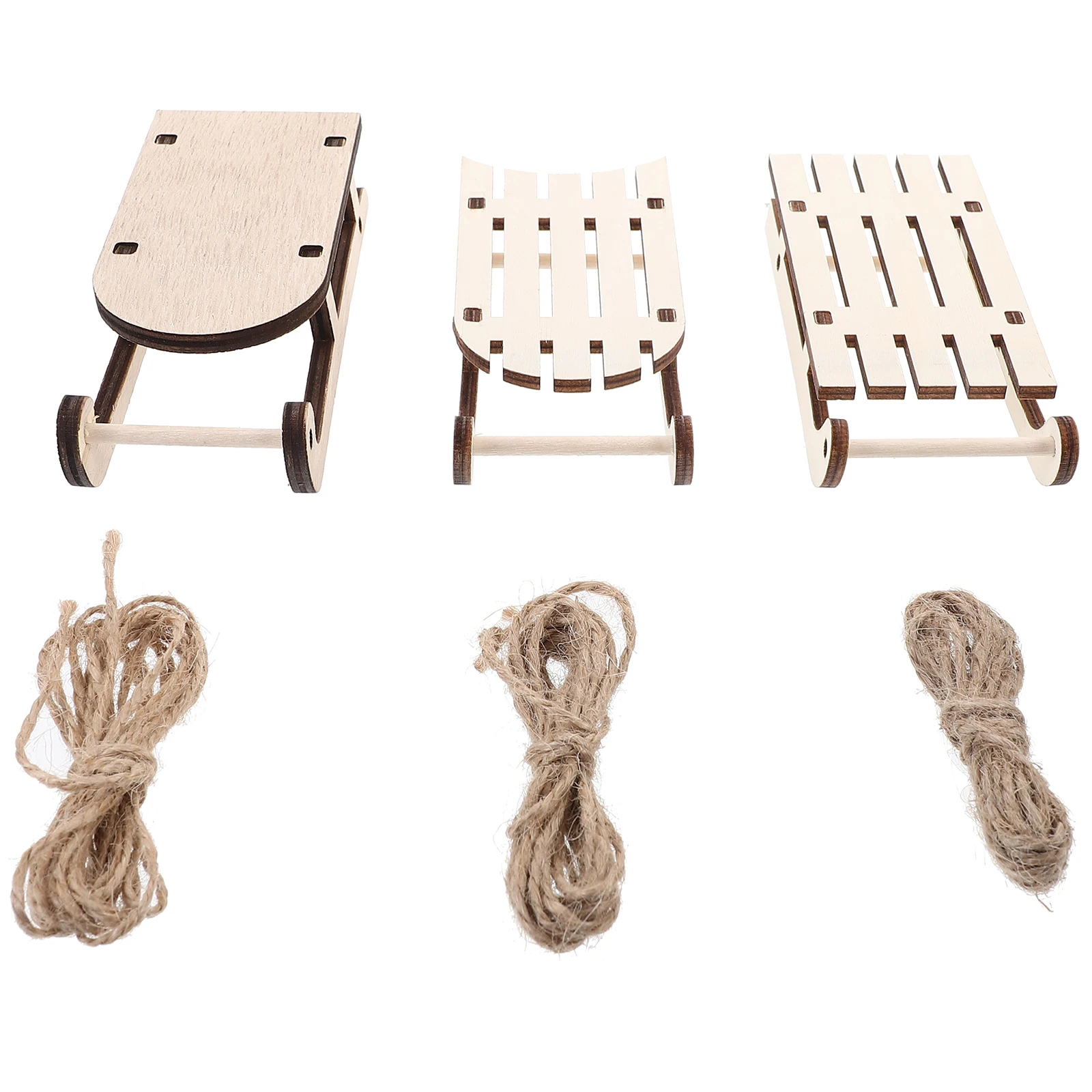 12 Pcs Wooden Sleigh Ornaments Miniature Sled Model Craft Decor Xmas Decoration Dollhouse Christmas Hanging Home