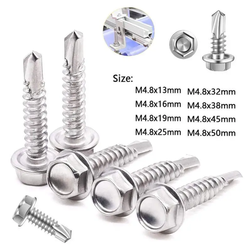 30pcs~10pcs Stainless Hex Washer Head Self Drilling Screws 4.8mm Stainless Steel Self Tapping TEK Screws