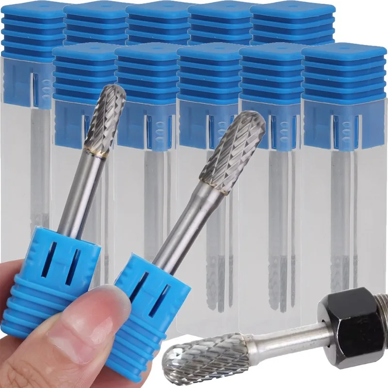 10pcs Carbide Burr Set, Hard Alloy Tungsten Steel Double Cut Rotary File Milling Cutter Head, Woodworking Grinding Carvin