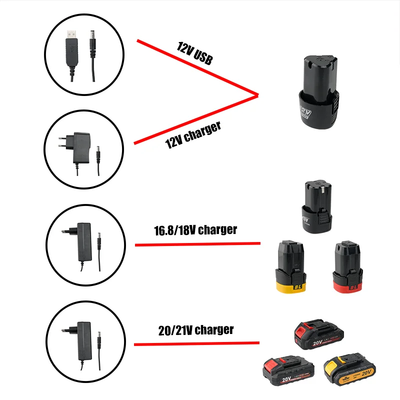 USB/12/16.8/18/20/21V Charger, Compatible With Lithium Battery, Electric Drill, Electric Wrench, Angle Grinder, Electric Tool